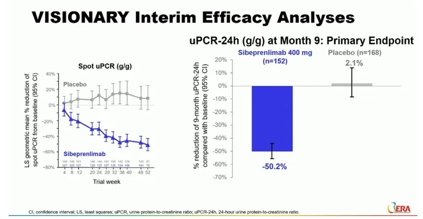 Referência: Perkovic V, Barratt J, Lafayette R, et al. Sibeprenlimab for Patients With IgA Nephropathy: Results From a Prespecified Interim Analysis of the Phase 3 VISIONARY Study. ERA Congress 2025, Vienna.